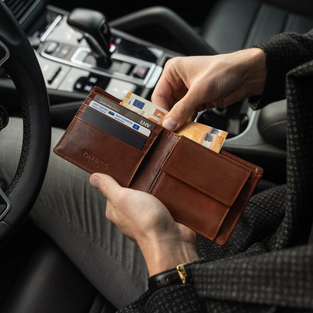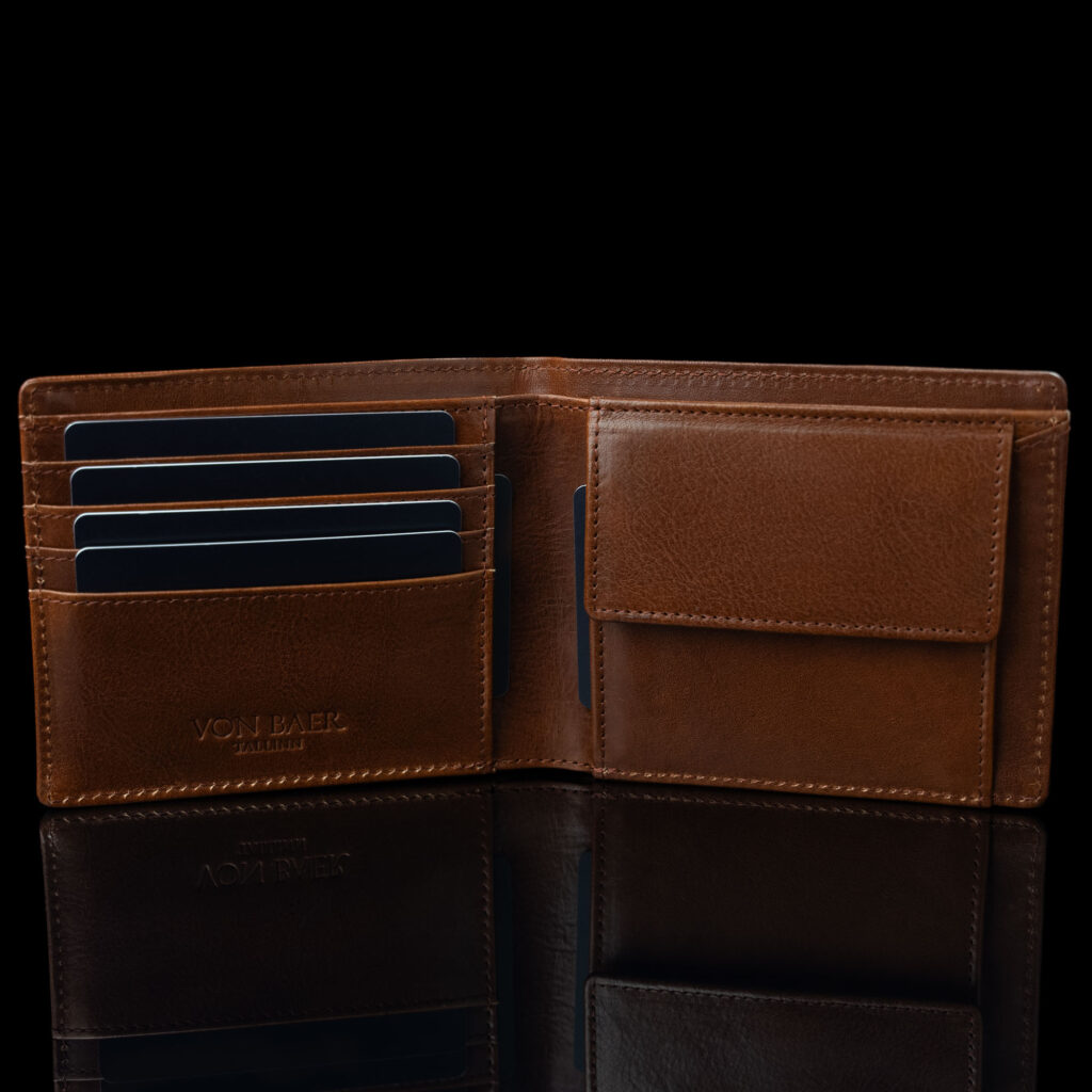 Klassikaline nahast meeste rahakott mahutab endasse palju – kaarditaskud, münditasku, sisse kaks lisataskut ning kaks erinevat vahet sularaha jaoks. Mõistliku suurusega rahakott mahub nii taskusse kui kotti, mahutades samal ajal ära sularaha ja kõik vajalikud pangakaardid. Oma mõistliku suuruse juures on see stiilne aksessuaar, mis kõneleb kasutaja heast maitsest.