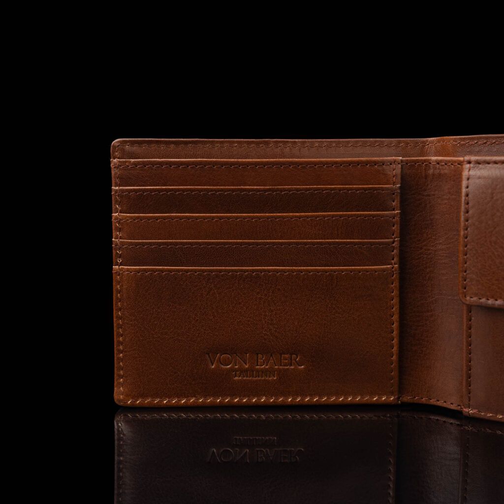 Meie jaoks on oluline, et meie tooted on ilusad nii seest kui ka väljast. Selle rahakoti puhul kasutame vastupidavat ja vett-tõrjuvat voodrit, mis on valmistatud polüesterkangast. Tänu materjali vetthülgavatele omadustele ei puutu nahk liigse niiskusega kokku ning rahakotti on hõlbus puhastada.