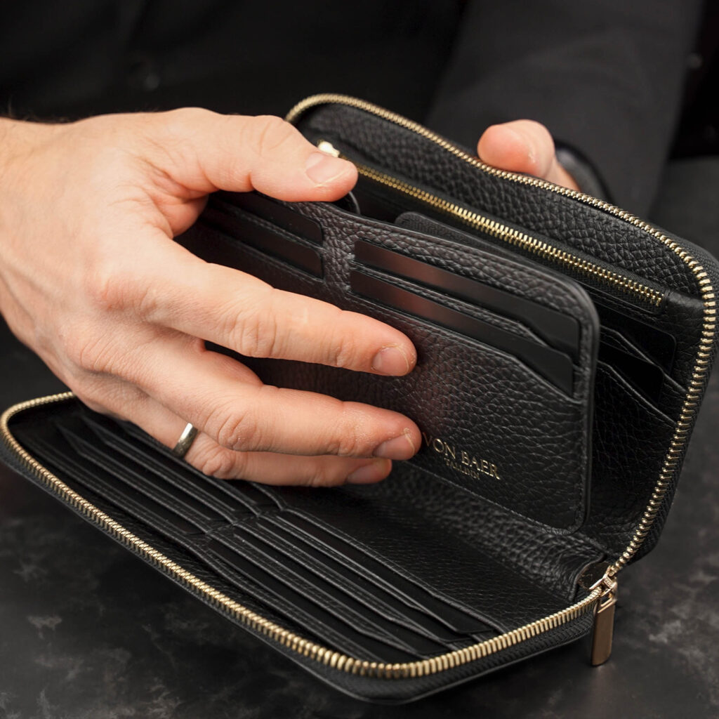 Elegantse W2 Elite rahatasku juurde kuulub ka magnetiga rahakotile kinnituv õhuke 5 millimeetrit paks kaarditasku, kus jagub ruumi veel neljale Teie olulisemale kaardile. Kaarditasku mahub mugavalt teksade või jaki taskusse, seega tarviduse korral saate kodust väljuda vaid kaarditaskuga ning jätta üleliigsed esemed koju.